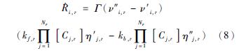 式中:Nr為反應r的化學物質數目;Cj,r為反應r中每種反應物或生成物j的摩爾濃度;η′j,r為反應r中每種反應物或生成物j的正向反應速度指數;η″j,r為反應r中每種反應物或生成物j的逆向反應速度指數;Γ表示第三體對反應速率的凈影響。這一項由下式給出: