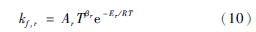反應r的前向速率常數kf,r通過Arrhenius公式計算: