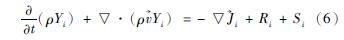 式中:Mw,i是第i種物質的分子量,^Ri,r為第i種物質在第r個反應中的產生/分解速率。反應中物質i的產生/分解摩爾速度以如下公式給出: