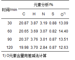 ?表 2 水熱處理后污泥固相產(chǎn)物的元素分析