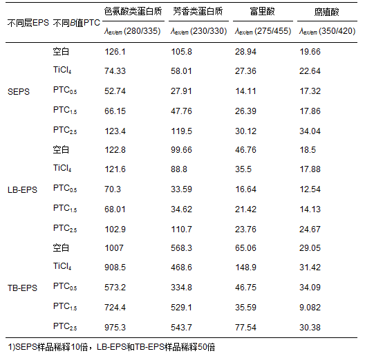 ?表 2 不同B值PTC對EPS熒光強度的影響 1)