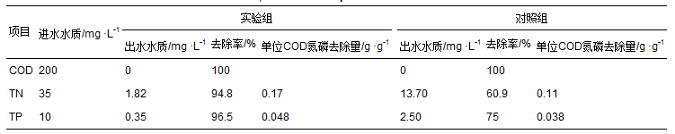 表 2 實驗組和對照組出水N、 P的去除情況