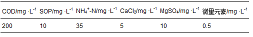 實驗用水采用人工配水,進水水質指標見表 1. 碳源用無水乙酸鈉,氨氮采用氯化銨,溶解性正磷酸鹽(SOP)采用磷酸二氫鉀和磷酸氫二鉀混合使用. 微量元素組分及濃度詳見文獻[19].