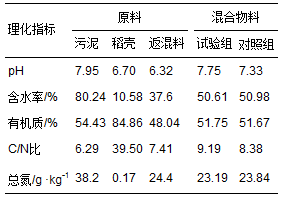 表 1 污泥堆料組成及其特性