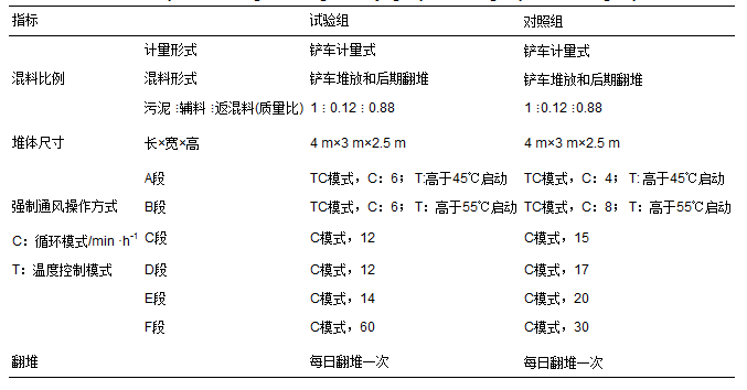 表 2 污泥生物干化試驗組與對照組的試驗設計