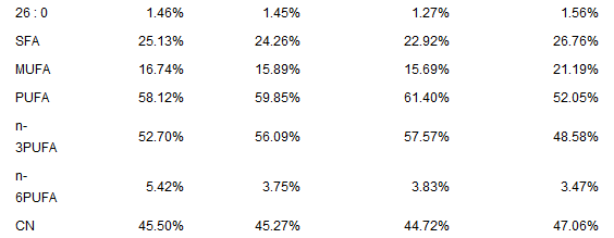 表3 利用豬場養殖污水培養的狹形小樁藻藻細胞脂肪酸含量