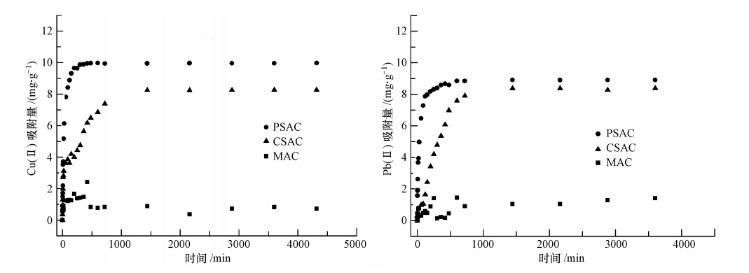 抗有機污染性能的測試在死端過濾裝置上完成.在0.1 MPa下測定膜的純水通量J0及隨時間變化的腐殖酸通量J,以通量衰減率J/J0確定膜受腐殖酸污染的情況.配制0.5 g · L-1 BSA溶液(在pH=7.4的磷酸鹽緩沖溶液中完成),測定膜分別受表面污染及三次內部污染后的純水通量Jx.表面污染即將待測膜浸泡在0.5 g · L-1 BSA溶液中30 min,然后將膜取出用去離子水沖洗,內部污染指將經過表面污染后的膜用0.5 g · L-1 BSA溶液在0.1 MPa下過濾10 min,然后用去離子水沖洗膜表面(Deng, et al., 2010).以純水通量恢復率Jx/J0來評價Ag/PVDF膜抗牛血清蛋白污染的能力.