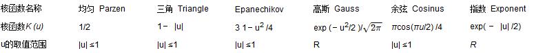 核函數為關于y軸對稱并且其積分為1的概率密度函數,常用的核函數種類見表 1.根據以往學者的研究,不同核函數對結果的影響較小(郭照莊等,2008),本文選擇應用較為廣泛的高斯核函數進行研究.