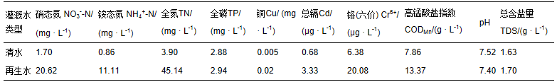 表1 灌溉水水質(zhì)成分