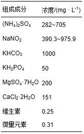 CANON工藝的啟動(dòng)階段采用人工模擬高氨氮廢水.啟動(dòng)完成后,利用某石化公司石油裂化催化劑生產(chǎn)廢水對(duì)微生物進(jìn)行馴化,廢水日產(chǎn)量約為15.6×103 m3.模擬高氨氮廢水的水質(zhì)如表 1所示(于英翠等,2012),微量元素成分見(jiàn)表 2.