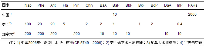 表2 多環(huán)芳烴水質(zhì)標(biāo)準(zhǔn)