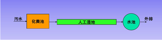人工濕地法是最近幾年興起的污水處理方式。其主要流程為: