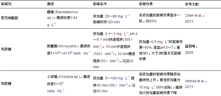 表 2 有機高分子絮凝劑在微藻分離采收中的絮凝條件及效果