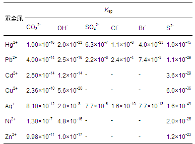 表 1 重金屬難溶化合物的溶度積常數(Ksp)