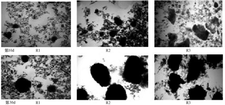 ?圖 2 污泥顆粒化過程中形態(tài)變化(×40倍)